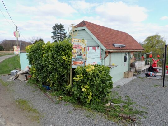 Voor een drankje of een hapje onderweg zorg je best zelf als je niet voor verrassingen wilt komen te staan. Er staan regelmatig picknick banken. Met wat geluk is er wél een cafeetje open in Flobecq of Ellezelles. In ieder geval vind ik het een meerwaarde om de fietsroute heel even te verlaten om een streekbiertje te drinken in de taverne 'Au Chaudron des Légendes' (van de 'Brasserie des Légendes') en/of er een lekker hapje te eten.